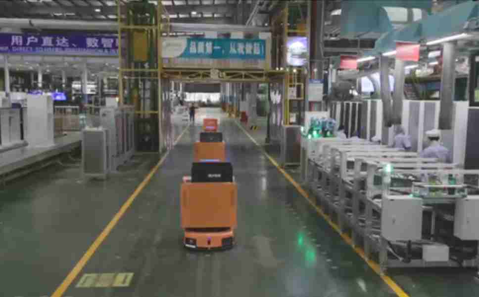 为车载冰箱物流配送打造的智能解决方案,,,包含产中物流通过潜伏举升AMR搬运至线边,,产后成品物流智能仓储,,流程包含产中物流智能齐套入库,,,,线边安灯叫料AMR智能配送至线边,,,成品入库、、、出库,,,,通过无人堆高车机器人,,,智能仓储管理替代人工作业管理,,实现更高存储、、、更高效率、、、更具柔性化的解决方案。。